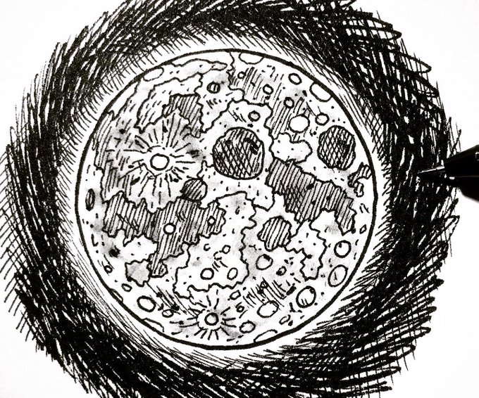 Inktober Day 18: Moon #inktober #inktober2021 #ink #inktoberday18 #moon #space #patchworkmoon #planet #orbit #illustration #art #artwork #drawing #pen #sketch @inktober 🌕🖊