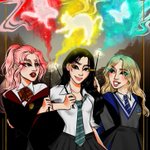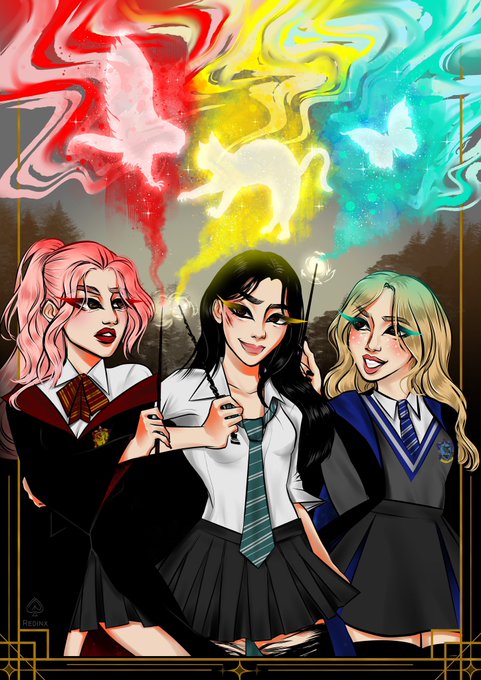 Merry magical Christmas @blissfulip I was your secret Santa hehe 😘 I gift you your fav golden trio in Harry Potter AU 🎄✨ #orbitsecretsanta #loona #Loonathefanart #HarryPotter