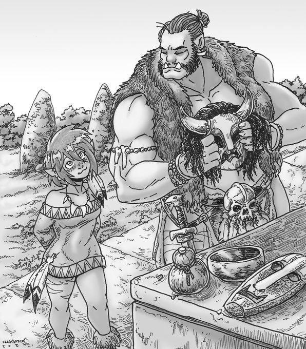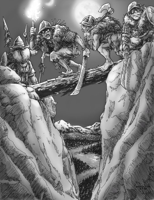 "Orcpeliers" -#Orc #mercenaries in human service-in Ushaenor, during the Wars of the False Prophets. A #drawing I had done the inks last year, using both #inktober and #orctober prompts, which had resulted in "A pumpkin patch". #fantasyart #warrior #orcs #illustration #Artists