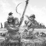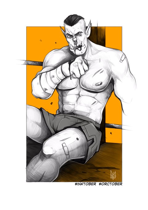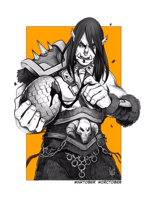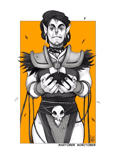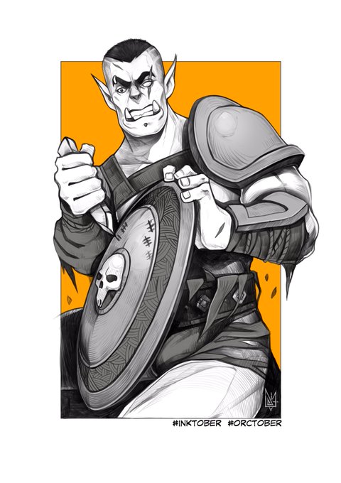 As October is coming (and with it the daily drawing challenges as #inktober and #orctober), I remembered that I hadn't give proper shadows to several pieces of #orctober2021. Have been looking around for some #orctober2022 lists, but little luck so far! #drawing #orc #warrior