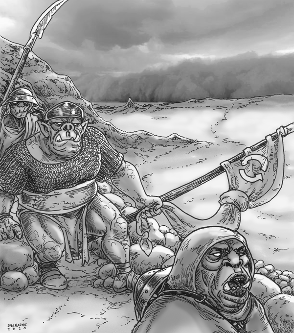 An #orc #patrol on the edge of the dustlands of Brüm. The inks I did back in #orctober of last year. #orcs #drawing #fantasyart #illustration #fantasy #inktober2021 #orctober2021.