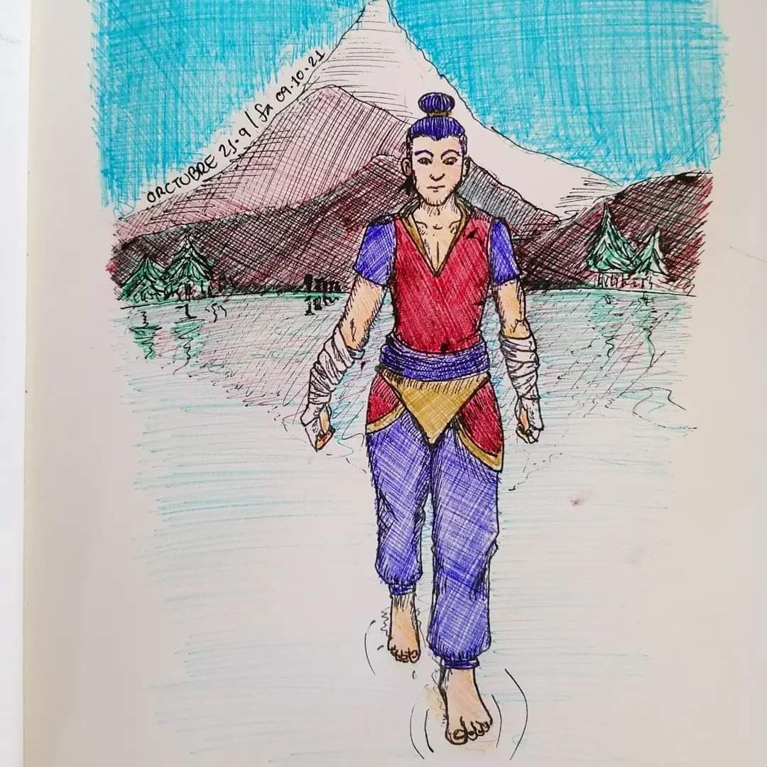 Día 09 del #orctubre2021 Momento de destreza #59264: Mirok caminando sobre el agua #dndart #dndmexico #inktober2021 #ilustracion #Tintubre