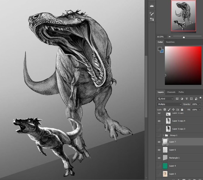 Worked out the basic composition for this #Tyrannosaurus and #Pachycephalosaurus #illustration. #art #paleoart #paleontology #dinosaurs #theropod #ornithischian #digtalart