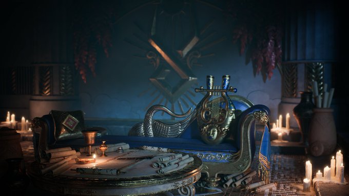 What I imagined the chambers of our favorite sad musician Orpheus would look like, with his beautiful lyre as a main focus. #HadesGame #HadesFanart #Orpheus artstation.com/artwork/nEZRD6