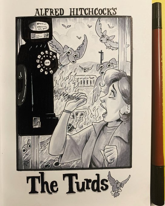 Tippi Hedren smuggling treats in the phone booth again 🙄 #drawtober #day23 #osocomix #sketchbook