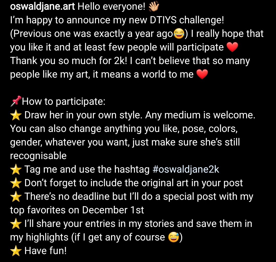 My new DTIYS to celebrate 2k on instagram ❤️ I’d be very happy to see your entries! Must don’t forget to use hashtag #oswaldjane2k 😉 #dtiys #drawthisinyourstyle #украрт #Inktober