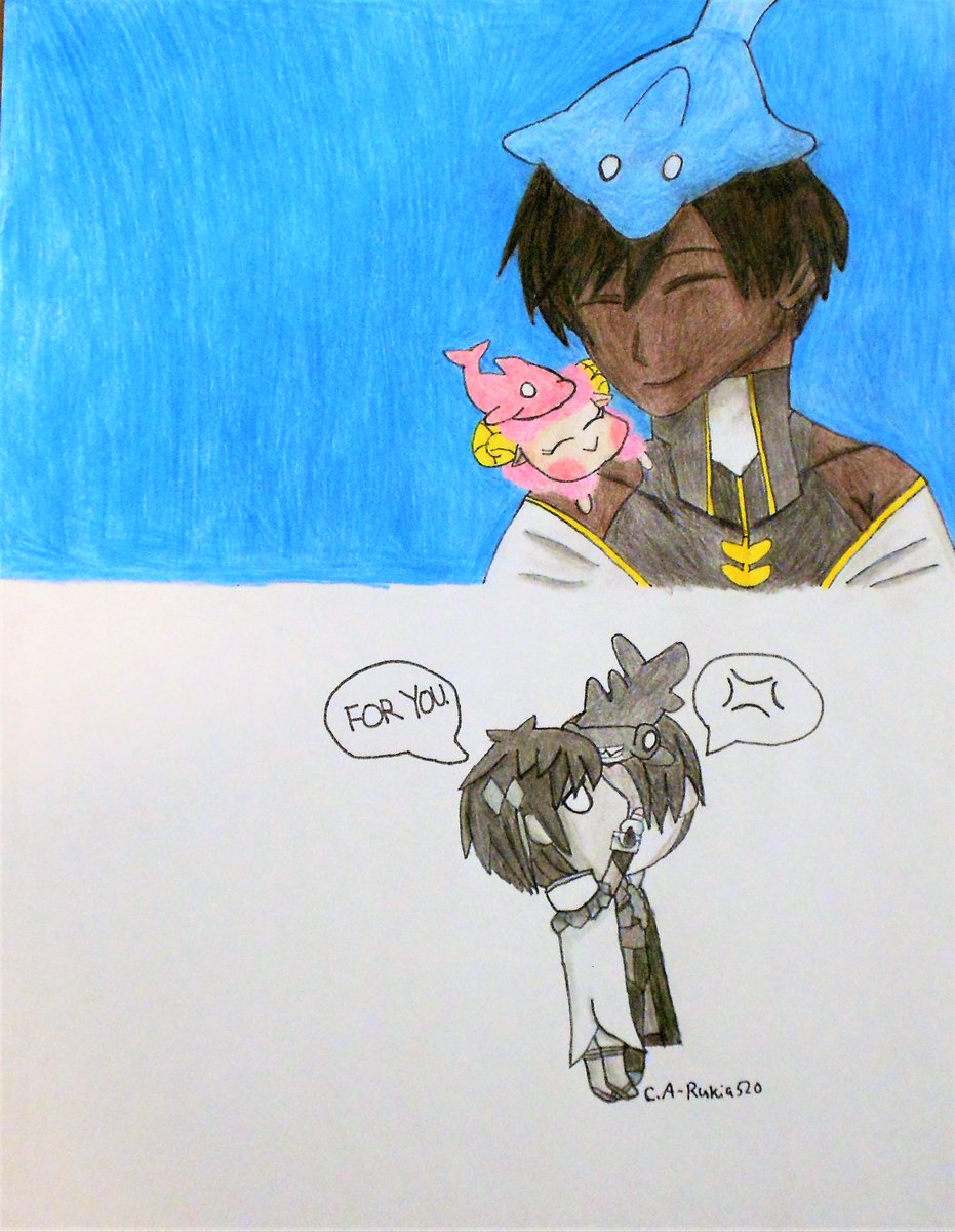 Dolphin Hats (and Hammer Shark) (Pop Quiz: Three-Legged Crow Leisure Land) #obeyme #obeymefanart #Obeymelucifer #obeymemc #obeymesimeon #obeymeshallwedate #obeymeraphael #otome #otometwt #otomegame #fanart #art #coloredpencils #artwork #drawing