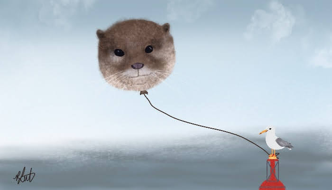 It’s #OtterloonDay! Oscar Otter thought he hit the jackpot finding a conch on the beach. He didn’t realize it was actually a Helium Snail! Now, he’s gotten different kind of fill and has become an #Otterloon! #Otterloons #animaloon_collective @Animaloonies #Animaloon #Animaloons