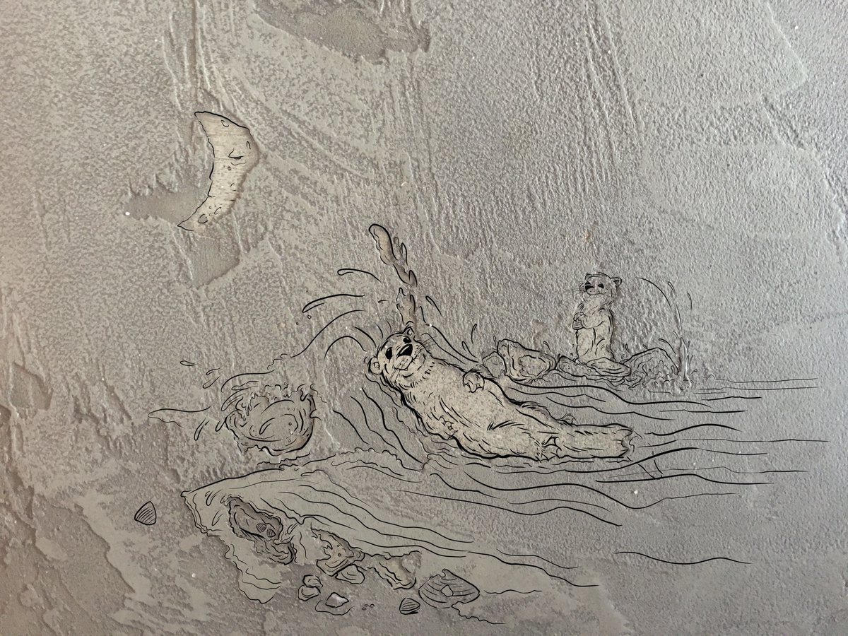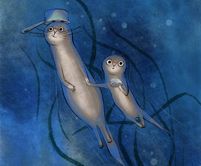 The moon tucked in for the rest of the night while the otters still danced and swam in their ocean playground. Seeing stories in the stone... #kidlit #kidlitart #sketch #storiesinthesidewalk #otters #moon #ArtistOnTwitter