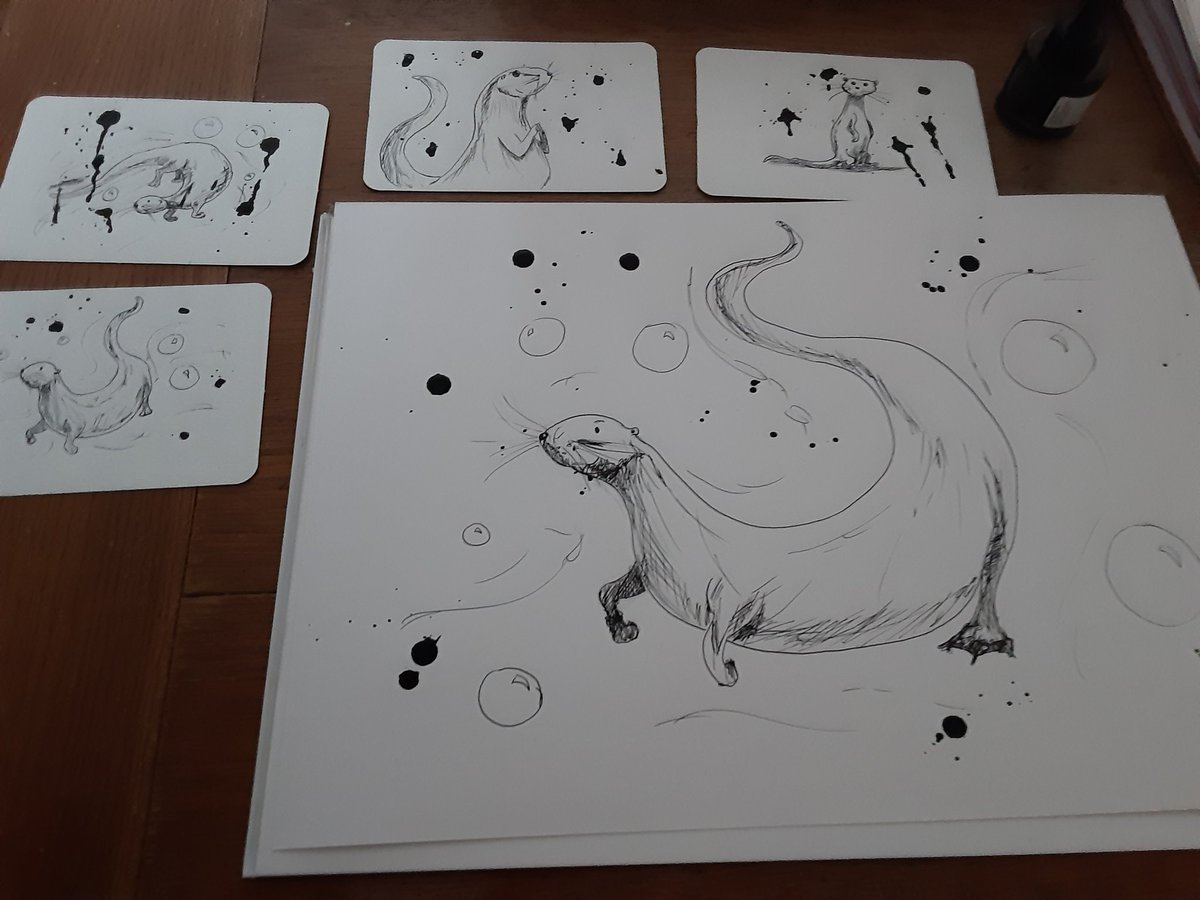 Today's wildlife study: otters. #illustration #art #wildlife #otters #ink #sketching #artist #kidlitart