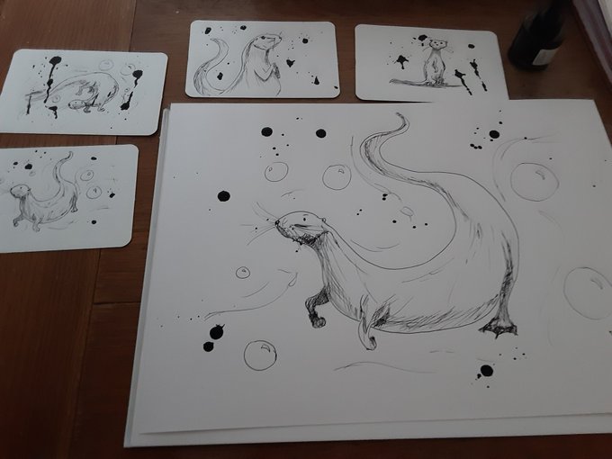 On #WorldOtterDay2022 I thought I'd share a piece I created last year. Hopefully, in the near future he will be available as prints and cards, and maybe as other merchandise.💜 #WorldOtterDay #MHHSBD #Otters #ArtistOnTwitter #SBS #Wildlife