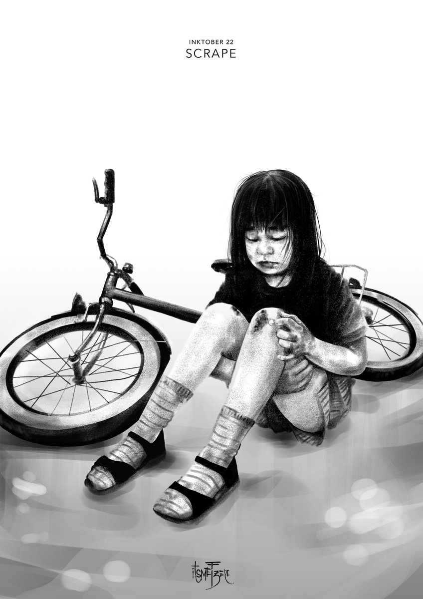 INKTOBER 2022 𝗗𝗔𝗬 𝟭𝟴: SCRAPE #inktoberday17 #Inktober #inktober2022 #ouch #scrape #littlegirl #ouchy