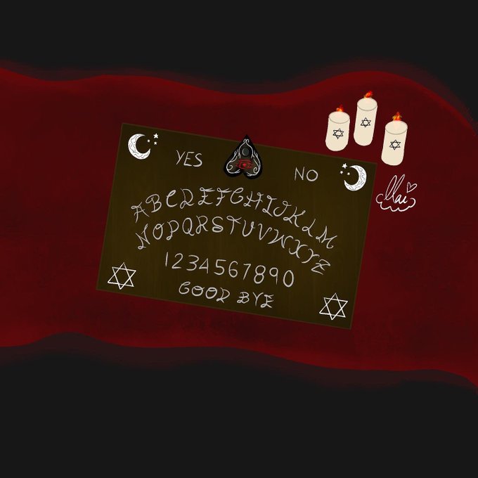 Day 29: Uh-oh! For the line art I used #georgbrushes GvW Firebolt. I simply couldn’t keep doing black & white, I love color too much. ### #inktober #inktober2022 @inktober #pinuptober #pinuptober2022 @deuza_art @georgvw #ouija #ouijaboard #ghost #sp… instagr.am/p/CkTfkiMvui0/