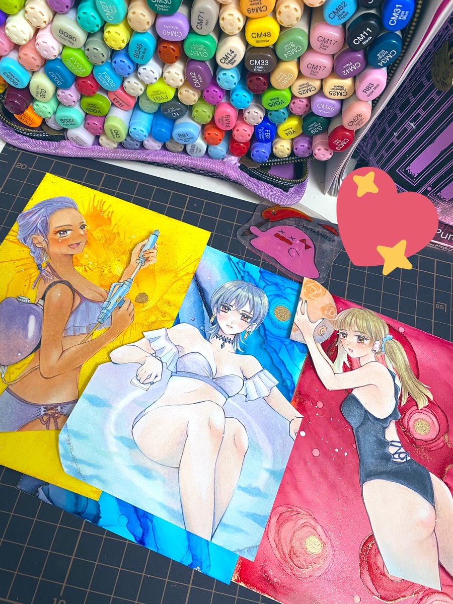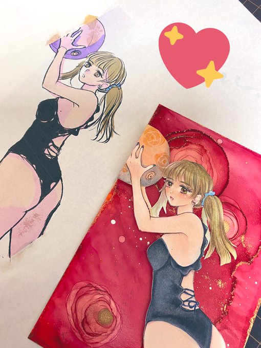アルコールインクアートしかり ラメ感は原画ならではだと思うので ぜひ #our_exhibition 夏展 場所はART SPEACE A-1さん、 会期2022年8月23(火)〜8月28日(日) イラスト見にきてください☺️💓 #アナログイラスト #創作イラスト #アルコールインクアート #コピック #夏