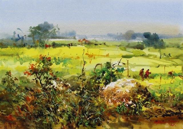 Mustard Field' watercolor by Shahanoor Mamun Demo link - youtu.be/aS7aHsbAIgU . . . . #pleinair #pleinairwatercolor #outdoorwatercolor #watercolorpainting #shahanoormamun #watercolordemobyshahanoormamun