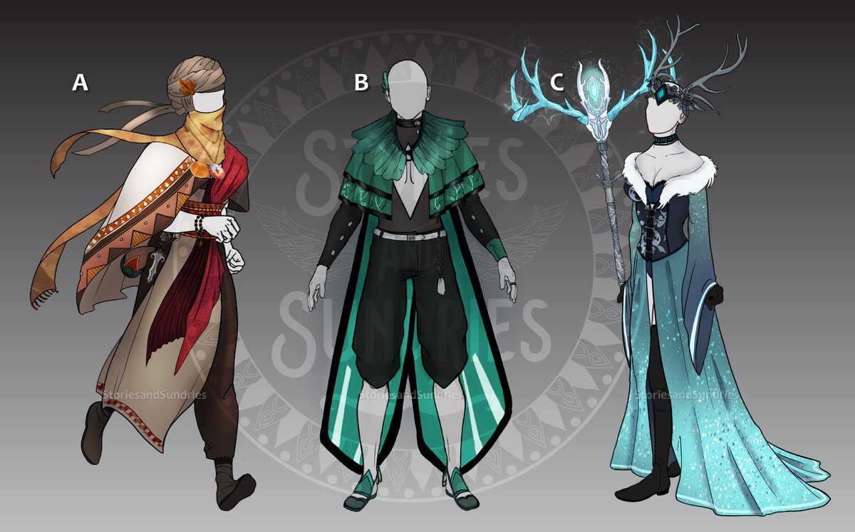 Our first batch of outfit adopts! Auction ends midnight (UTC) on December 10th, 2021. Low SB. #adopts #outfitadopt #DnD #dndart #adoptable #OC #digitalart #conceptart