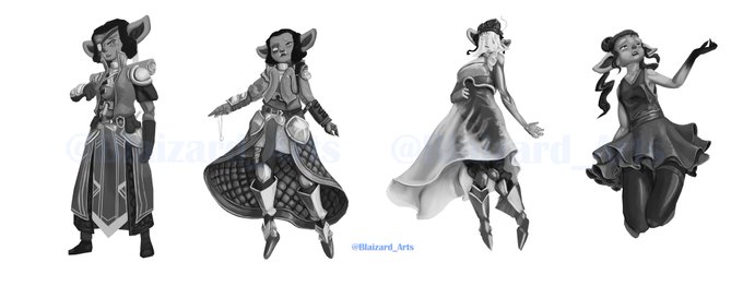 managed to get some work in first thing in the morning. Next step: adding her patterns, but at least I finished with the values for the clothes. one step at a time. #dndart #grayscale #Goblin #outfitinspo #characterdesign #digitalart #conceptart #ArtistOnTwitter