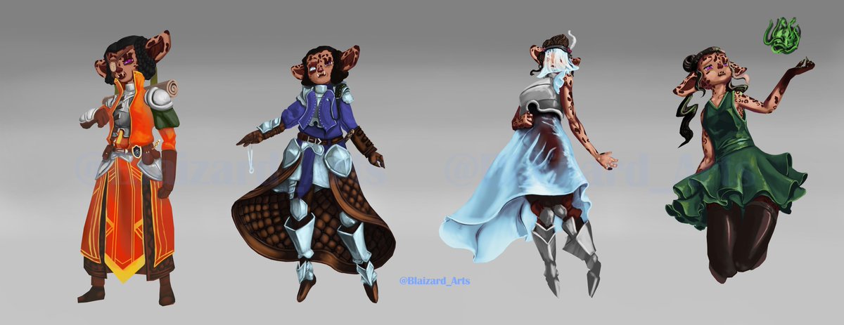 Lunna in various attires, this has been fun to do, but this isn't all I had in plan just yet. #characterdesign #dndart #conceptart #goblin #outfitinspo #digitalart