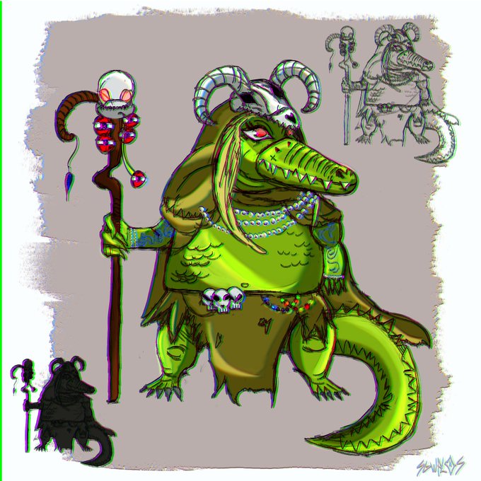 4- Folclore : Cuca ✨🐊✨ A bruxa brasileira, testando e arriscando umas coisas nesse design. #outoonbro #inktober2022