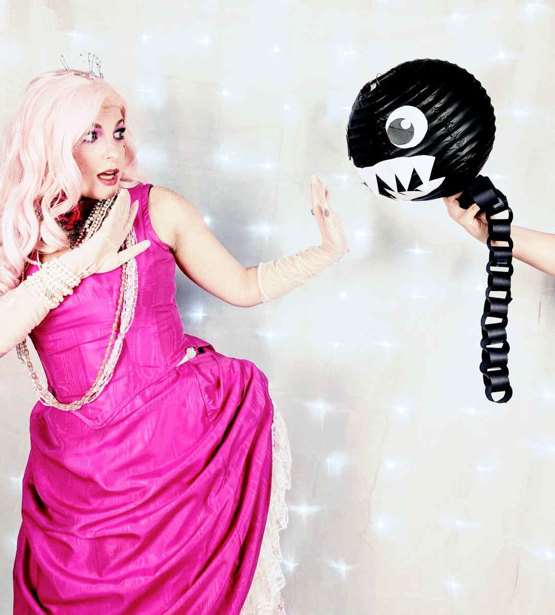 Who can save 👸🏼 Princess Peach from this terrifying Chain Chomp?!? 😂 While shooting this beautiful Victorian ballgown, things got silly= one of my favourite outtakes😁 #whodoesnthavechainchompsjustlyingaround #princesspeach #chainchomp #cosplay #historybounding #outtake #bts