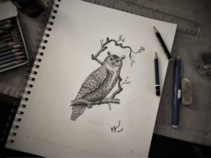 (Sorry I'm late on this one). 🦉 Day 18 of #ArtAdventCalendar with a Great Horned Owl I did as a gift for my Great-Aunt's 95th birthday. #artists #ArtistOnTwitter #owls