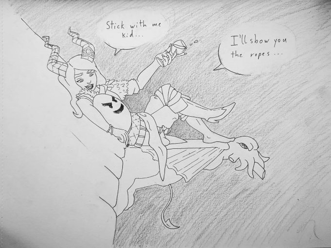 In honour of the @Oxventure new season/channel, a scene with @janedouglas 's tiefling warlock Prudence in full wine aunt mode, bonding with Bloodwing the dragon egg 😅 Where did her other boot go? You tell me man... #inktober2022 #oxventure