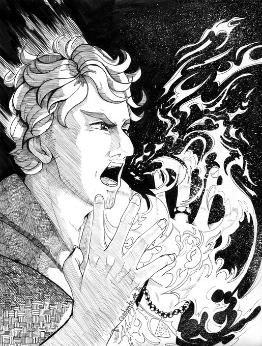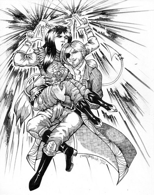 Dob is now, canonically, a gorgeous anime bishounen. The only thing non-canon about this image is Merilwen saying "wut" off in the corner. #Inktober #Inktober2022 #Oxventure @Oxventure