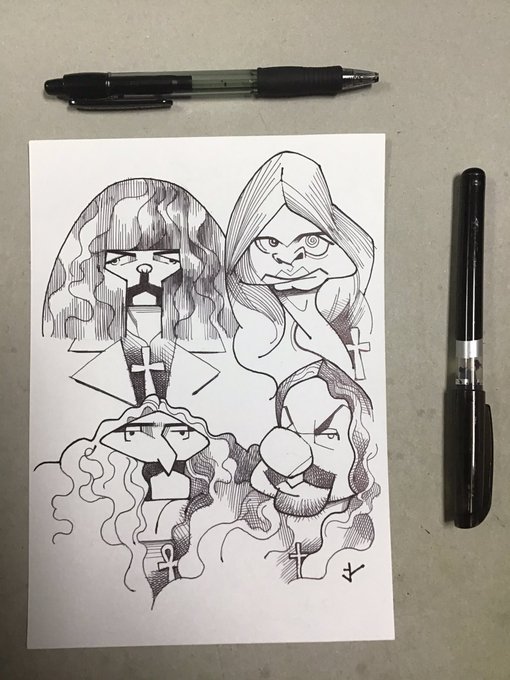 #musictober 15/31: Black Sabbath. Available for purchase (40€ + shipping), ink on A5 size paper. #inktober #ink #caricature #music #rock #blacksabbath #caricatura #ozzyosbourne #ozzy #tonyiommi #geezerbutler #billward