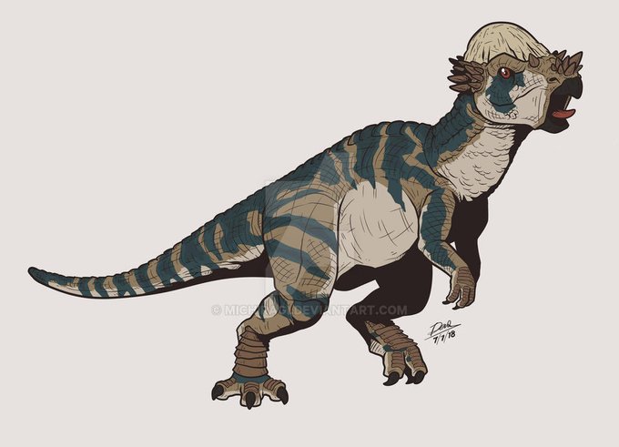 This week's Dino Fact theme will be #Pachycephalosaurus! The largest member of its family of dinosaurs, it lived at the end-most Cretaceous period in North America. Join us this week as we discuss its weird anatomy, environment, and ontogeny. (#PaleoArt: Michiragi on DA)