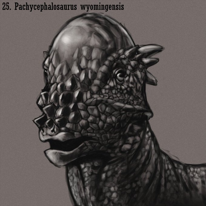 Day 25: Pachycephalosaurus wyomingensis #Pachycephalosauruswyomingensis #Pachycephalosaurus #Pachycephalosaurini #Pachycephalosauridae #Pachycephalosauria #Ornithischia #paleoart #dinovember #archovember #dinosaur