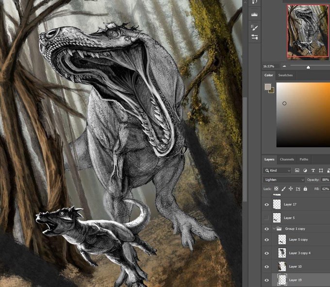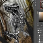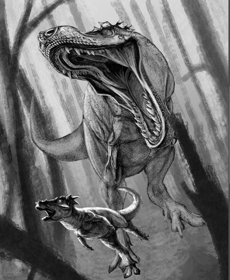Worked out the basic composition for this #Tyrannosaurus and #Pachycephalosaurus #illustration. #art #paleoart #paleontology #dinosaurs #theropod #ornithischian #digtalart