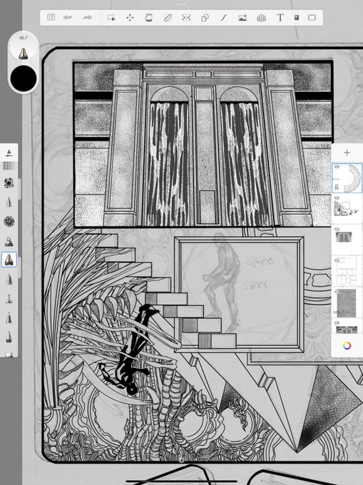 Details of a story I am working on… and ut has a lot of surrealistic scenery… which are a nightmare to ink 😜 #wip #inking #progress #sequentialart #comicbooks #comics #art #digital #digitalart #illustration #comicbookpage #page #fumetti #surrealism #drawing #dibujos