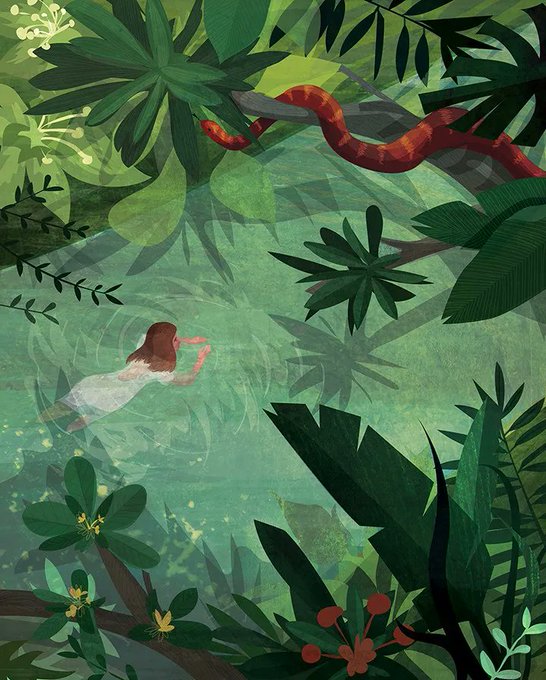 Stunning illustration from a children's book illustrated by Kerry Hyndman, called "Survivors." She is represented by @ciablog. Explore more: buff.ly/364SpGV #survivors #survival #jungle #wildlife #childrensbook #kidlit #childrensillustrator #painterly #illustration
