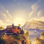 🌅 Sunday drive vibes inspired by Jessie Lin's beautiful #illustration of the iconic #BixbyBridge on the Big Sur coast of California. Jessie is represented by @RappArt. Explore more: buff.ly/3T6m6Rb #coastalviews #digitalart #painterly #bigsur #illustrator #landscape