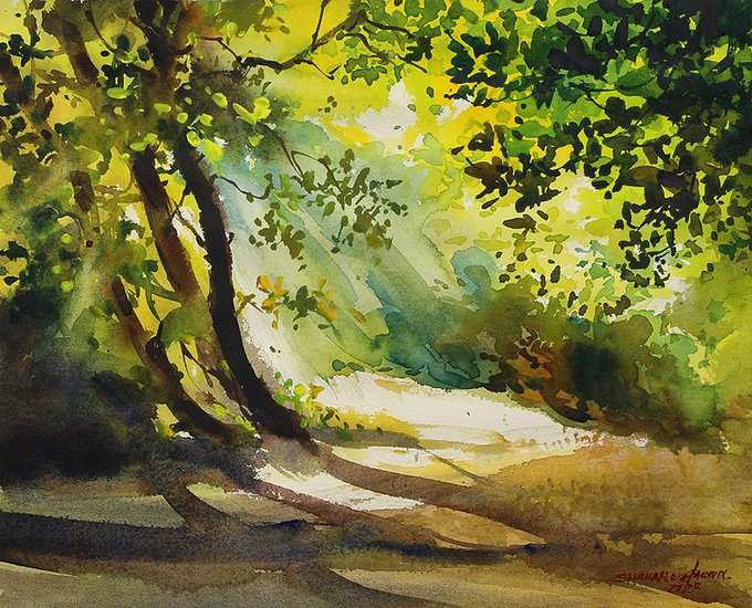 Sunrise in the Forest' watercolor Painting by @shahanoormamun click to watch - youtu.be/Waj9SG5ENpM . . #watercolorlandscapetutorial #watercolordemo #simplelandscapeinwatercolour #watercolorart #art #artists #painters #shahanoormamun #watercolordemobyshahanoormamun #forest