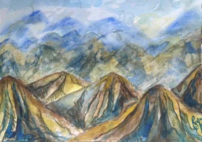 وادٍ غير ذي زرع .. . A deserted Valley . Water color (21*14.8 cm) . #rayaarts #watercolor #paintingoftheday #paintingminiatures