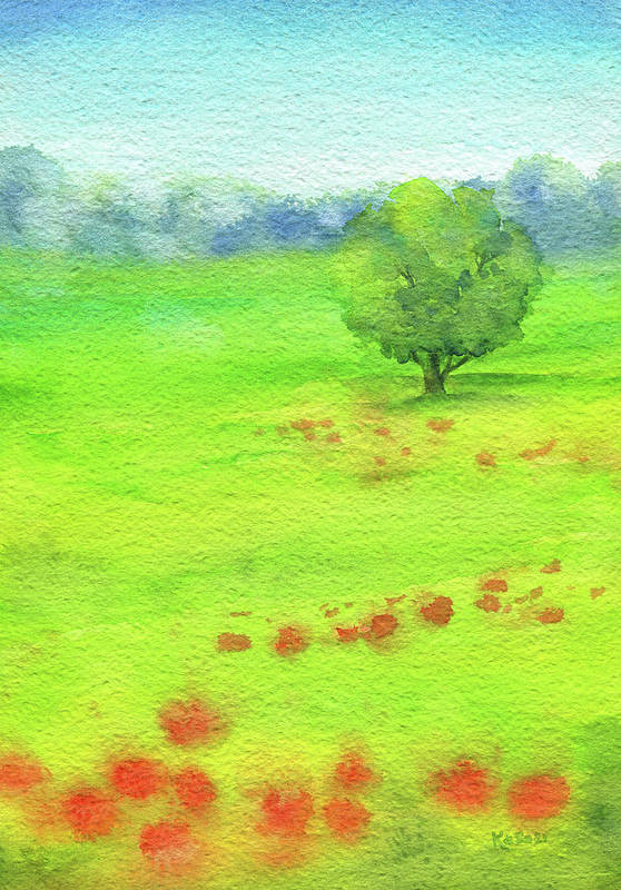 A walk in the beautiful countryside inspired me to paint this watercolor landscape painting with a lonely tree standing in a green meadow with blooming red poppies. karen-kaspar.pixels.com/featured/lonel… #landscapepainting #Landscapes #nature #naturelovers #art #PaintingforSale #painting #trees