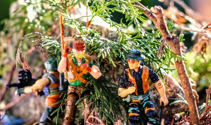 PathFinder: (whispers)On your call Rock. #Hasbro #GIJoe #bush #paints #ARAH #RockAndRoll #PathFinder #Cobra #オモ写 #ToyPhotography #photoshoot #arah #80s