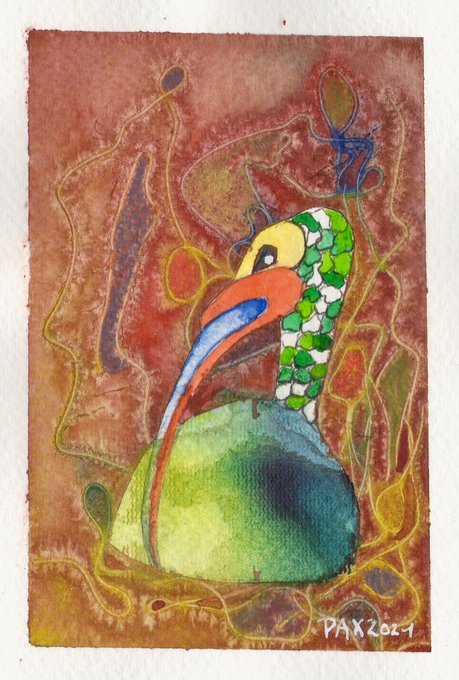 Bird 360,from my series “BIRDS”, A6 watercolour on Arches paper, Senufo art inspired, year 2021 #수채화 #आबरंग #水彩 #akvarelis #akvarelė #watercolour #Acuarela #aquarell #aguarela #acquerello #akvarel #aquarelle #birds #oiseau #pajaro #vogel #series #pax3009