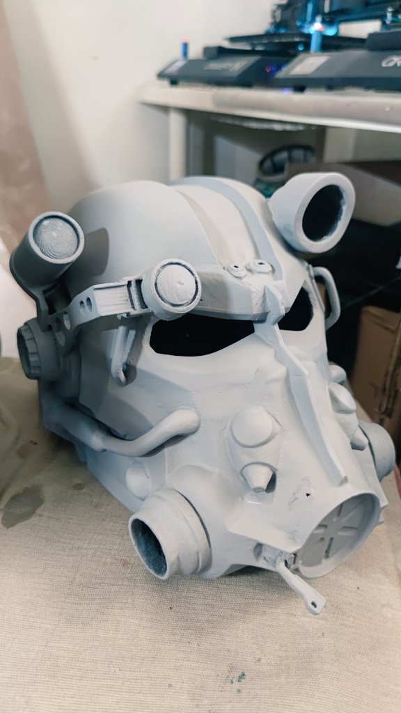 Ya está todo el casco de Danse impreso!! Hoy le lijaré la base y le echaré la resina, así que mañana tocará seguir lijando 😭💪 #paladindanse #fallout4 #cosplay #WorkinProgress