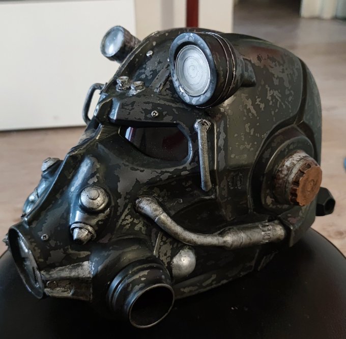 Ya le he pintado las orejas al casco de Danse 😍 no importa que no esté bien del todo ya que tengo que añadirle el envejecimiento, óxido y tierra todavía. Lo siguiente es añadirle los detalles a los tubos y pintarlos! #paladindanse #fallout4 #cosplay
