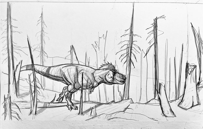 Another piece inspired by #Prehistoricplanet; Helushka roaming a forest on a hillside right after a seasonal fire. #tyrannosaurus #dinosaur #paleoart #paleontology #tyrannosaurusrex #art #sketch #drawing #paleobiology