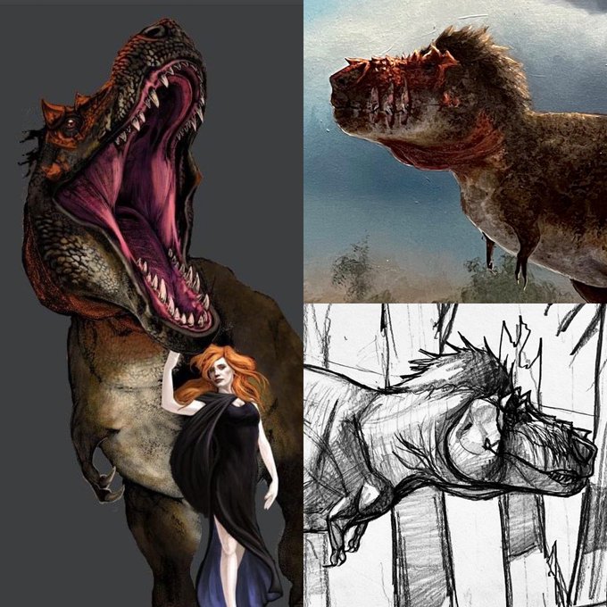 Made some decent progress on this Helushka piece. #tyrannosaurus #tyrannosaurid #tyrannosaurusrex #tyrannosaur #theropod #dinosaur #dinosaurart #paleoart #paleontology #paleobiology #art #sketch #doodle #drawing #traditionalart #painting #acrylicpainting #wip