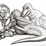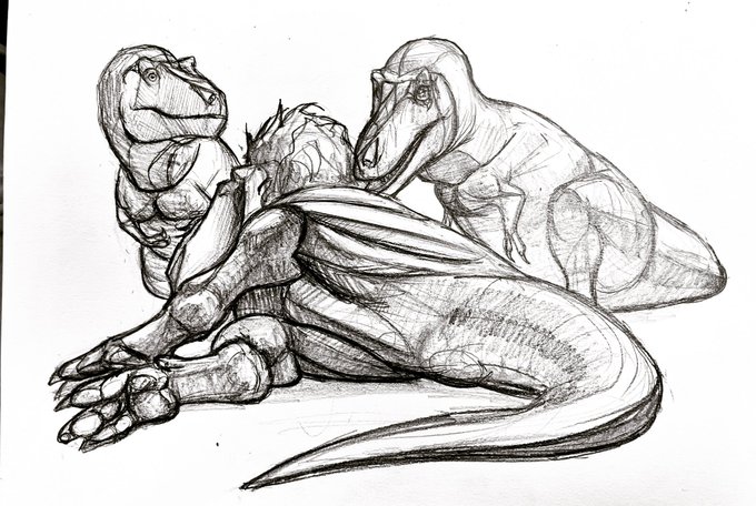 A sketch of a group of Tarbosaurus just chilling, with a female preening the mane of the male. #tarbosaurus #tarbosaurusbataar #tyrannosaurus #tyrannosaurid #tyrannosaurusrex #tyrannosaur #theropod #dinosaur #paleoart #paleontology #paleobiology #art #sketch #doodle #drawing
