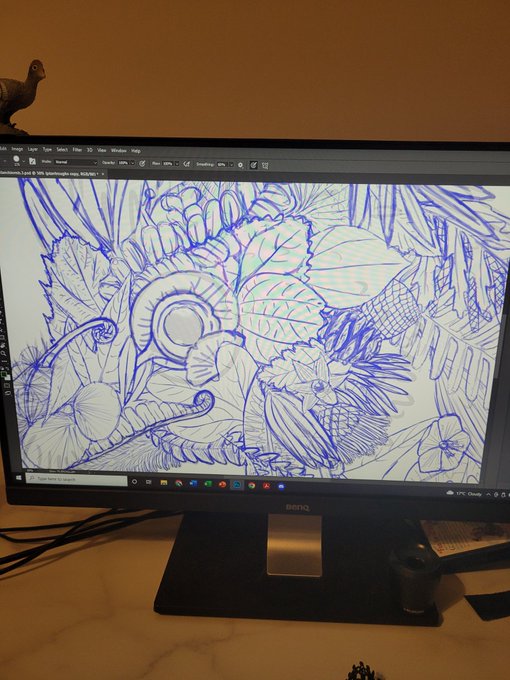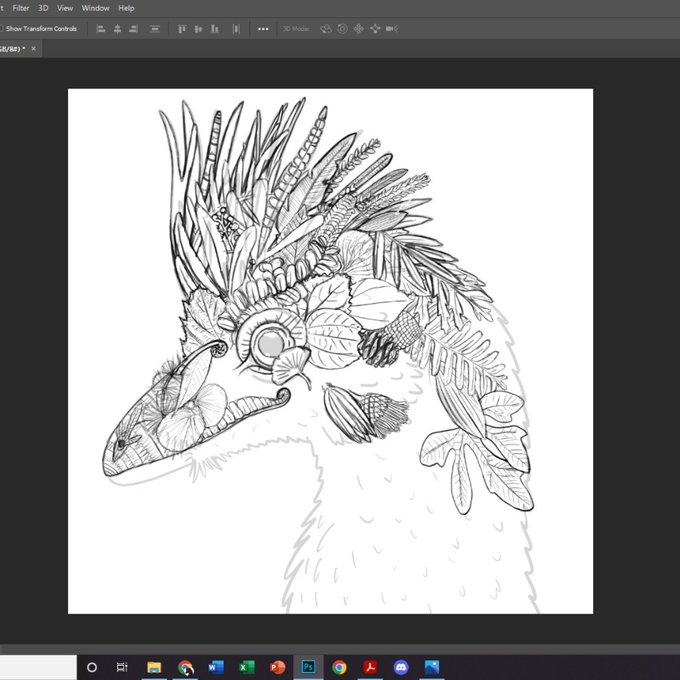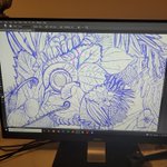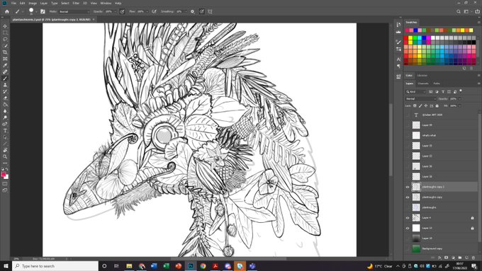 Update on my Plantiornis (aka, new #palaeobotanical profile picture). I'm currently at around 40 different plants and I've done a VERY rough coloured version to give you an idea of what it'll look like when finished. #paleoart #paleobotany #plants #botanicalart #anchiornis #WIP