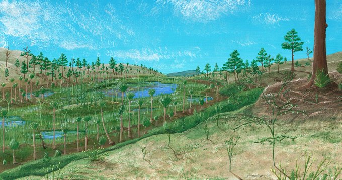 Just out: a new 400 million year old landscape reconstruction I completed to accompany a #naturecommunications study showing that Earth was much cooler before the rise of forests than expected #paleobotany #paleoart nature.com/articles/s4146…