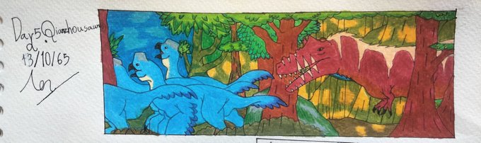 #Paleoctober #Paleoctober2022 day 5 with the long-snouted tyrannosaurid Qianzhousaurus being a cute murder bird.