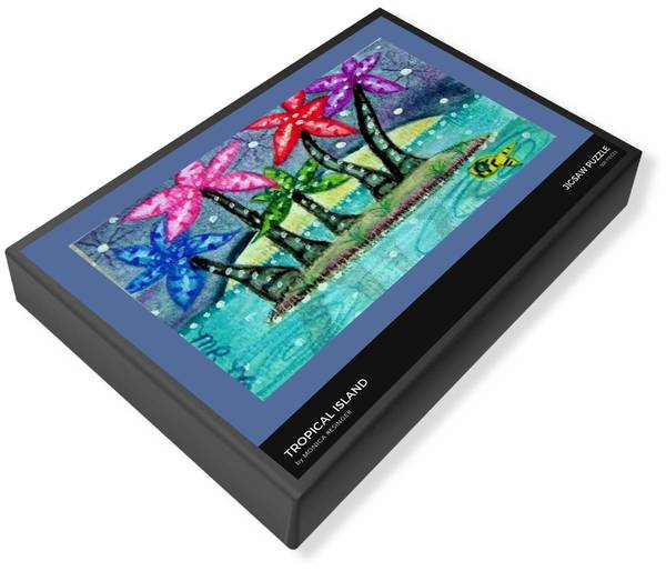 Jigsaw puzzle and weekender tote bag. These and other products with this image of my original painting available here: fineartamerica.com/featured/tropi… #buyintoart #findartthissummer #springforart #SupportArtists #ArtistOnTwitter #painting #art #whimsical #colorful #tropical #palmtrees