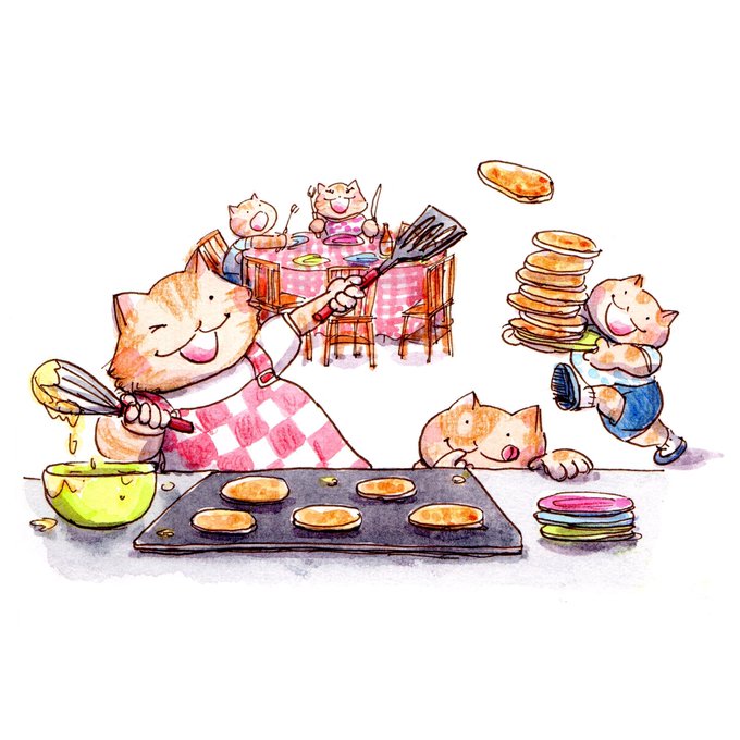 Sunday Morning Pancake Breakfast * * * * * #scbwi #CBIG #CBIGNYC #childrensbookillustration #childrensbookillustrator #childrensbookartist #illustration #drawing #dailydrawing #adrawingaday #midnightatelier #yukotorii #sundaymornings #pancakes