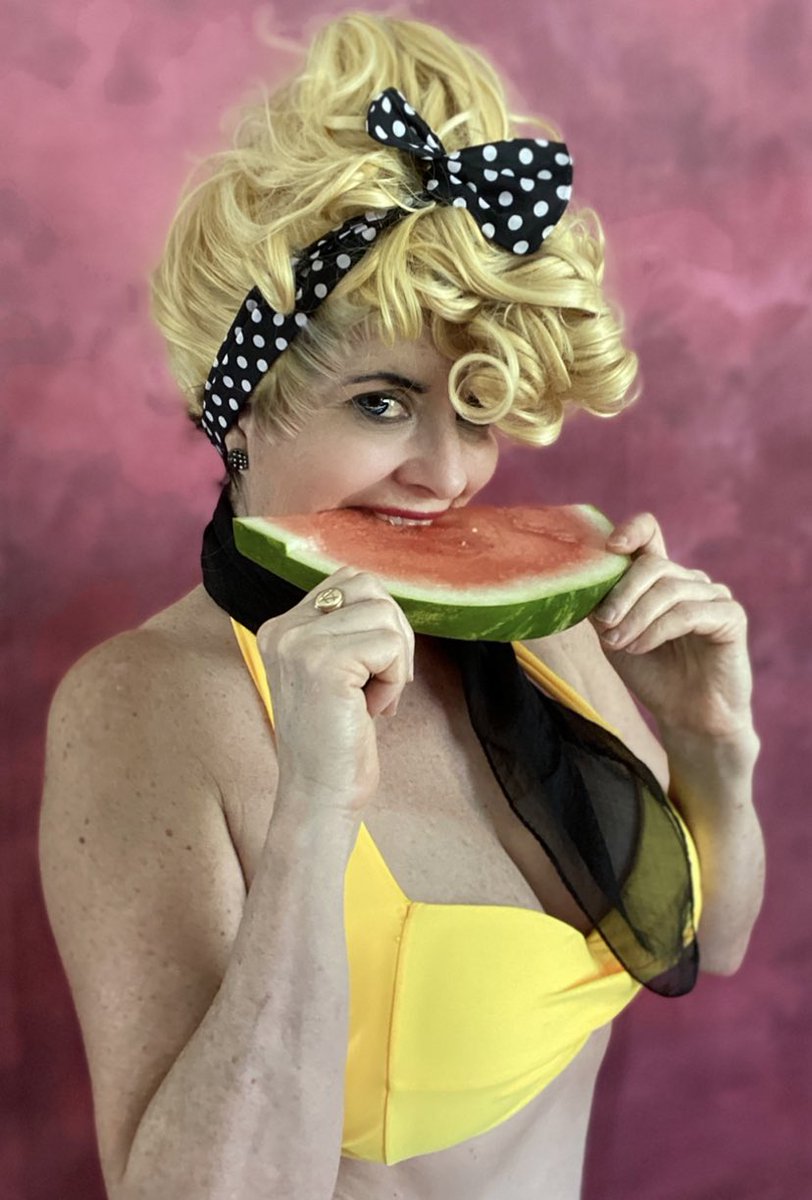 I had a pin-up #PanchyBriefs shoot on Saturday. I figured this character lent herself naturally to a pin-up shoot. Can’t wait to see how the pro photos turned out! I just had to do a watermelon shot because #anime characters and watermelon. 😄❤️🍉 #cosplay #DragonBallZ #mrsbriefs